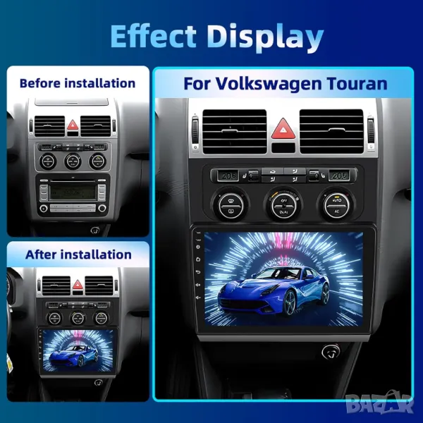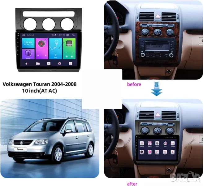 Мултимедия, Двоен дин, за VW Touran, Андроид, 2 DIN, volkswagen, 10", навигация, Android, Touran