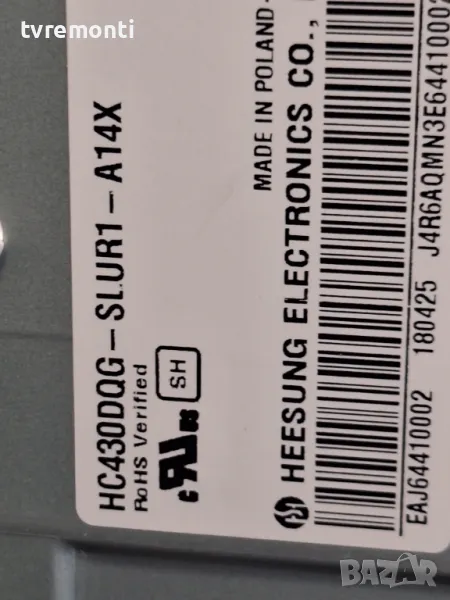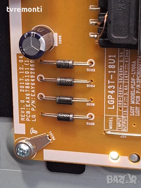 Power Supply Board LGP43T-18U1, EAX67865101, EAY64928601 for LG 43UK6750PLD for 43 inc DISPLAY HC430DQG-SLUR1-A14X борда е гарантирано работещ Демонтиран от телевизор LG модел 43UK6750PLD със счупен дисплей HC430DQG-SLUR1-A14X тествана от нашия техник Ремонт на всички марки съвременни телевизори