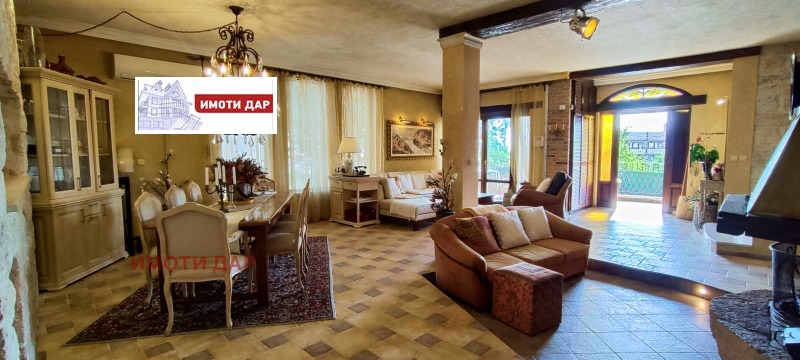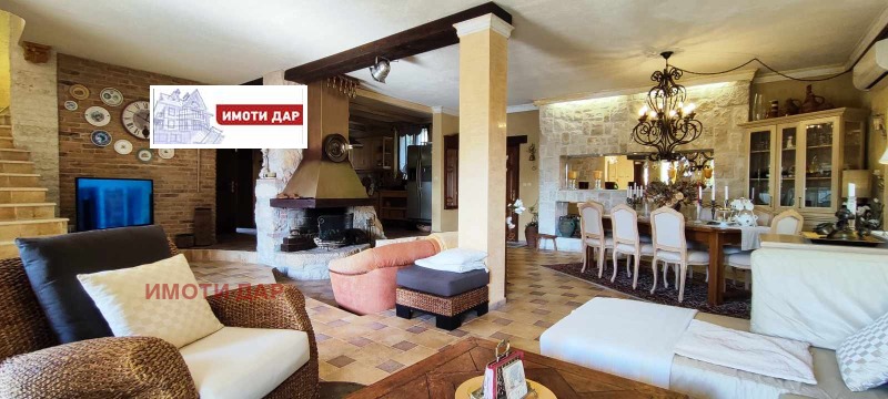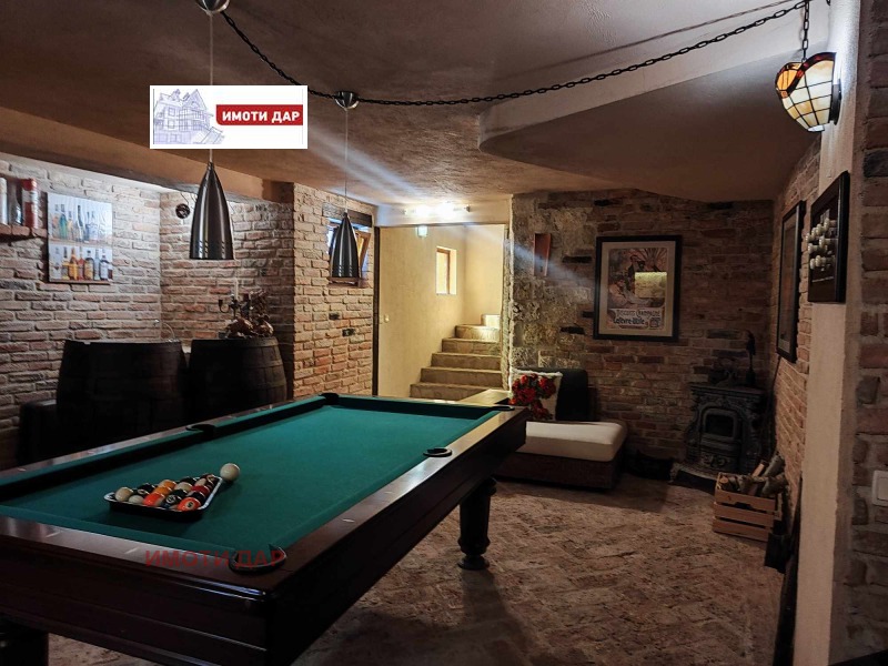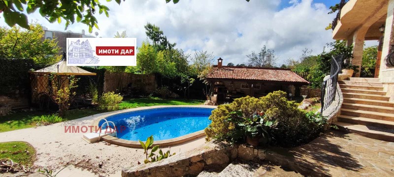 Прекрасна къща, с красиво озеленен двор, басейн, барбекю, сауна и билярд.