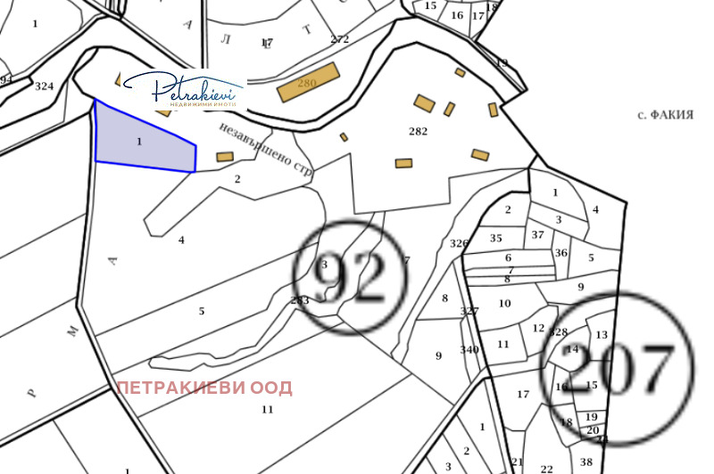Петракиеви недвижими имоти представя земя в землището на с. Факия, в местността Кривечки орман . Разположена е в Странджа планина, на 21 км от Средец и 47 км от Бургас. Инвестиционен имот, привлекателен за изграждане на вилно селище.