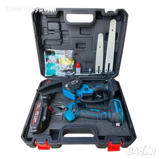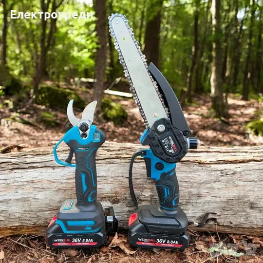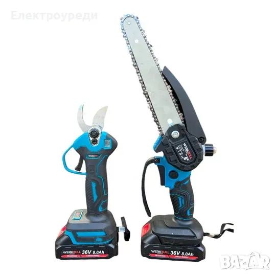 Промо 3в1 комплект WerkBull Акумулаторна Лозарска ножица с дисплей и Мини Трион с автоматично омасля