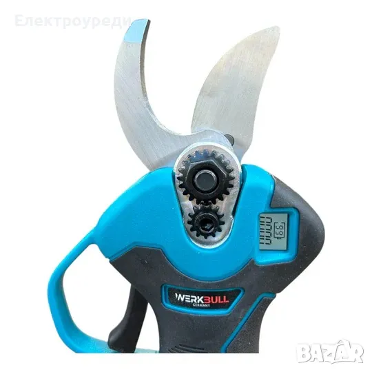 Немската Лозарска Ножица WerkBull на батерии е изключително важна придобивка във всеки двор, особено през есенните месеци от годината. Тествана от професионалисти, ножицата реже до 11 000 клончета безпроблемно. Акумулаторната лозарска ножица за рязане на лозови пръчки, клони, храсти и цветя. Максималният диаметър на рязане е 33 мм. Отварянето на ножицата може да се регулира в 2 степени според дебелината на пръчките. Високата скорост на рязане осигурява ритмична работа без напрежение. Специалната форма на горния нож намалява съпротивлението при рязане, полученият срез е гладък и фин. По-голямата здравина и издръжливост на ножовете е постигната чрез използването на специален материал. Компактността и добре обмисленият дизайн на модела правят възможно използването му на места с труден достъп.