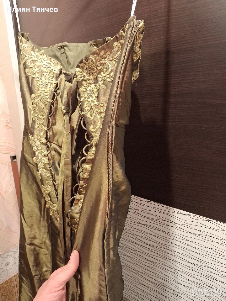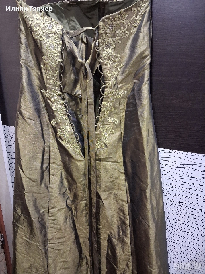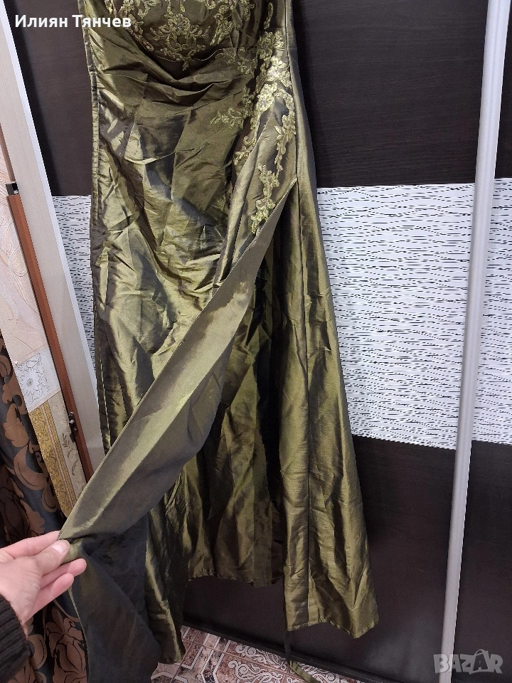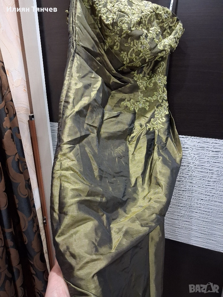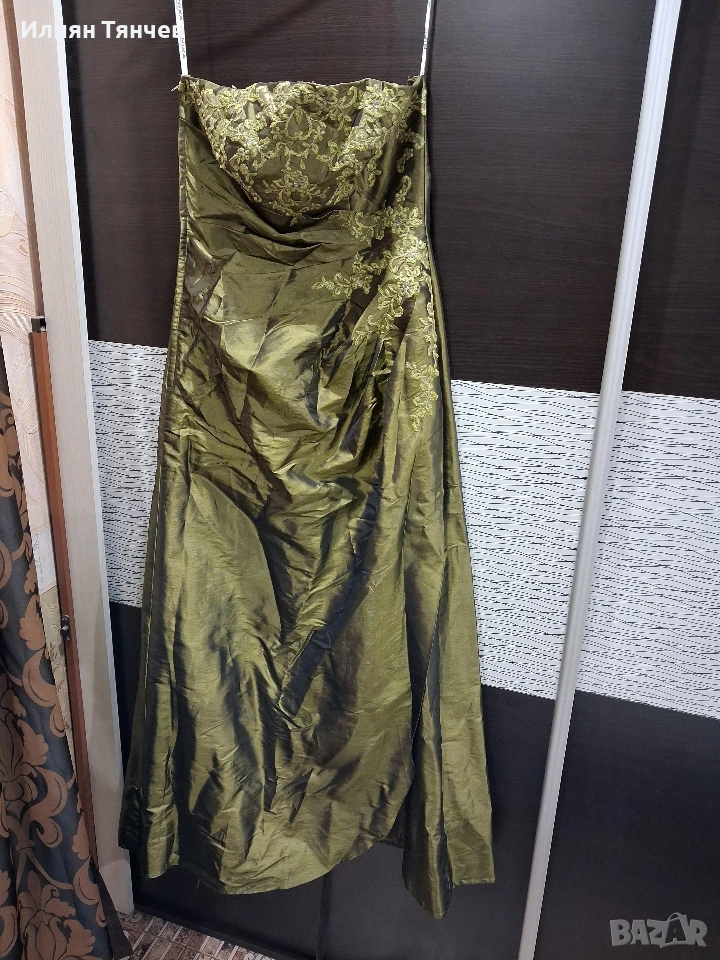официялна бална рокля сатен маслено зелено → Обява 47630558