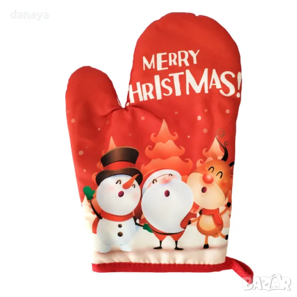 Комплект коледна кухненска ръкавица за горещо и коледна ръкохватка. Коледен дизайн – с тях готвенето ще бъде още по-приятно по време на най-топлите и весели празници – Коледа и Нова година. Вътрешната част е с пълнеж от висококачествена негорима вата, а външната – полиестерен плат. Безопасно хващане на горещи предмети с диапазон от -20 до +220 градуса! Коледната ръкохватка и ръкавица имат приспособление за закачане.