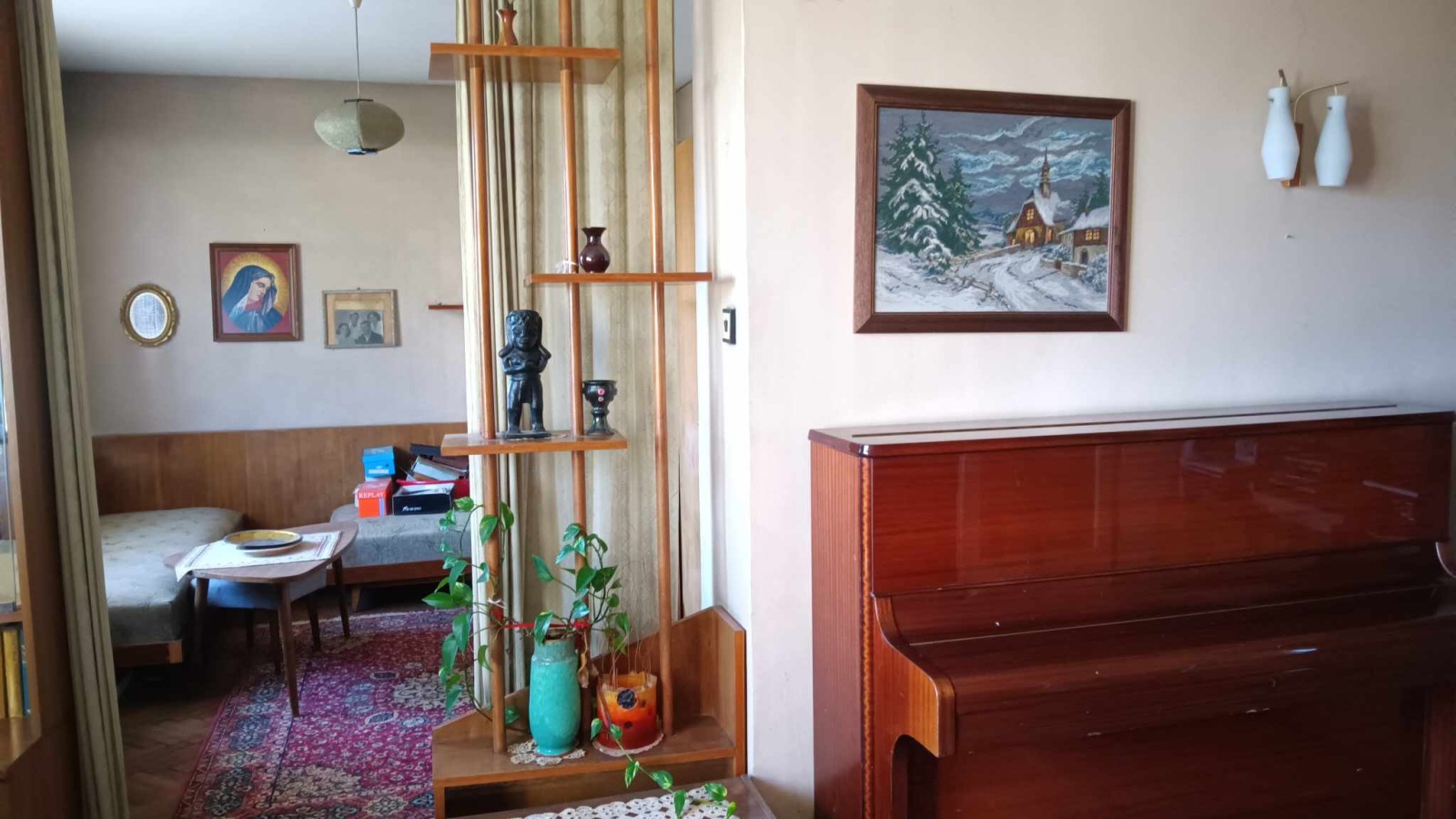 Входно антре с вградена гардеробна ниша, самостоятелна кухня с балкон, източна дневна с преход към едната спалня,пред двете помещения - чудесна панорамна тераса, втора самостоятелна спалня, тоалетна, баня. Жилището е топло и добре разпределено. За ремонт. Има мазе - 4 кв.м.с прозорец. Вход и общи части - поддържани, достъп - чрез чип-система. Асансьорът е с нова механика. За контакт: 'ЕЛИКТА' - Елена Караджова: 0888568428, с ключ.
