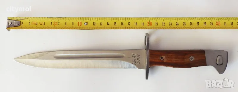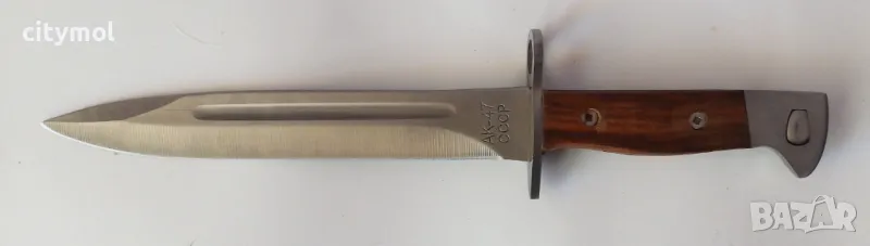 Армейски нож-щик с надпис АК-47 СССР. Войнишки нож, който може да се използва като щик, но иначе си е класика. Размери: обща дължина 310 мм, дължина на острието 196 мм. Кожен калъф за носене. За колекционери.