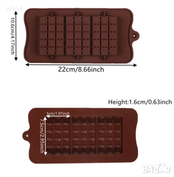 Дубайски шоколад квадрати троен силиконов молд форма калъп цяла плочка шоколадов блок → Обява 47631273