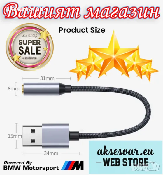 【Адаптер от USB към 3,5 mm】 Идеален за