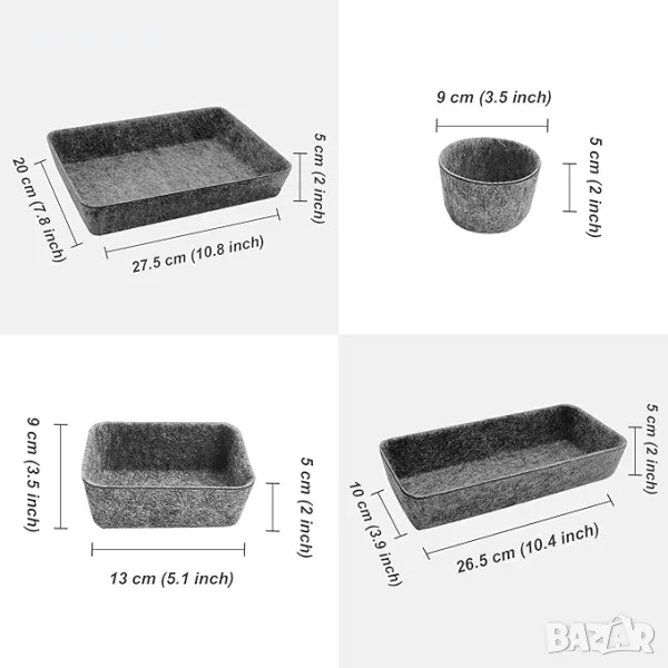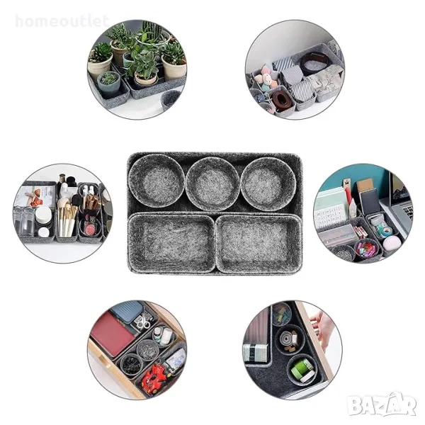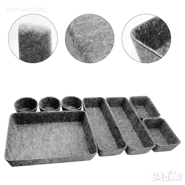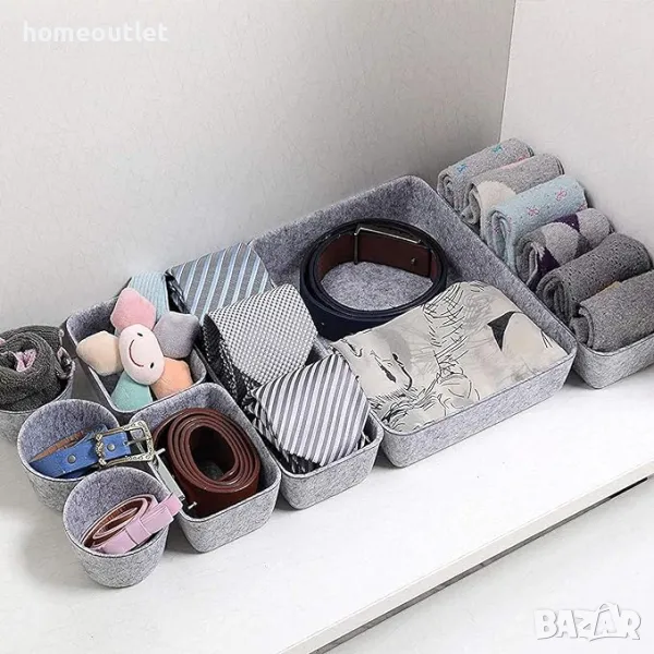 8 бр. органайзери за чекмеджета от филц, 4 различни размера.