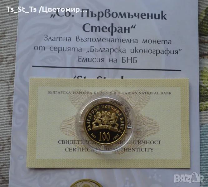 Златна монета 100 лева 2018 г. Св. Първомъченик Стефан → Обява 47632393
