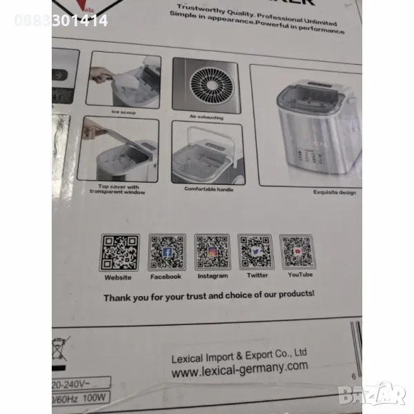 Оборудван с най-мощния и тих компресор, осигуряващ по-бърз охлаждащ ефект, ниска консумация и ниско ниво на шум. Лесен за почистване с обикновено избърсване. Тази машина предлага отличен избор за приготвяне на лед във вашия дом. С функции като висока мощност, достатъчен капацитет и бързо приготвяне можете да осигурите достатъчно лед за вашите студени напитки по всяко време.