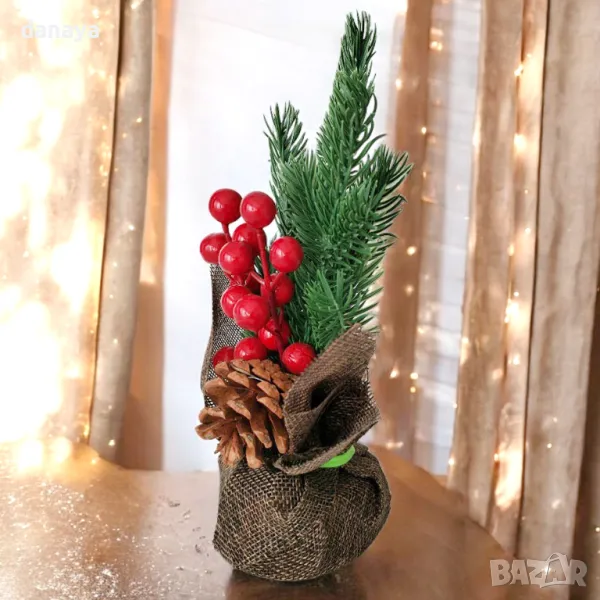 Красива коледна декорация под формата на коледен букет. Подаръчна елхичка, идеална за декорация или подарък за любим човек.