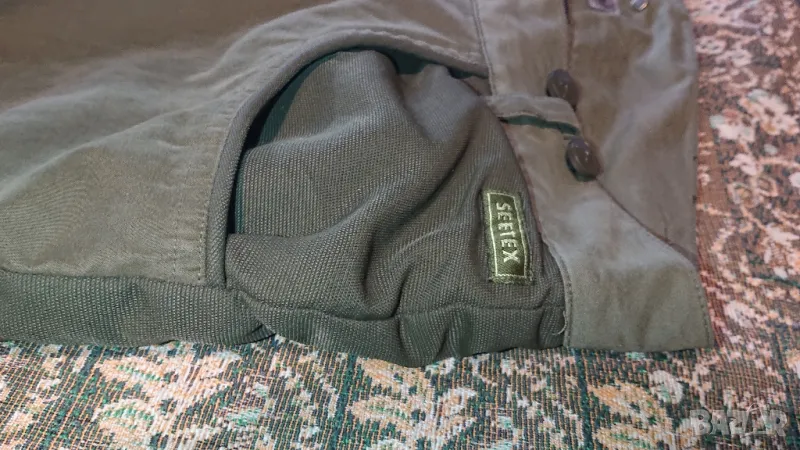 Панталонът е без забележки с мембрана SEETEX. Размери: Дължина мерена отстрани 112 см. От чатала 83 см. Ширина на кръста 55 см. Тези подсилени панталони Seeland имат 2-слойна мембрана Seetex, което ги прави устойчиви на вятър и вода, но също така напълно дишащи, така че независимо от времето можете да продължите. Иновативната външна част е изработена от восъчна комбинация, създаваща безшумно покритие, което отблъсква излишната вода и мръсотия. Движете се свободно благодарение на шарнирните колена, които са подсилени за изключителна издръжливост. Има джобове на бедрата и задни джобове, а подгъвът на крачолите се регулира според нуждите. Завършен с преден цип и централно копче.