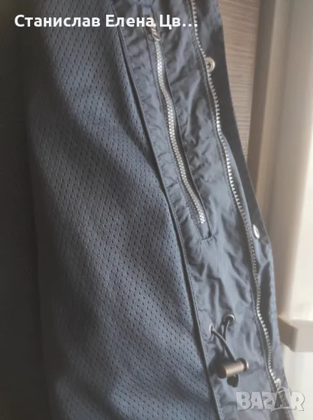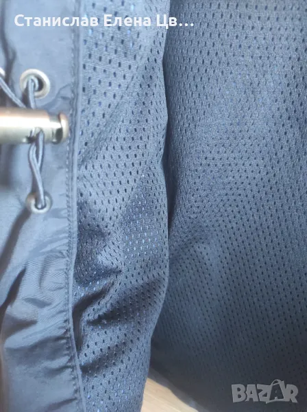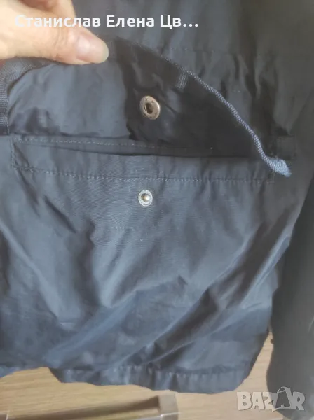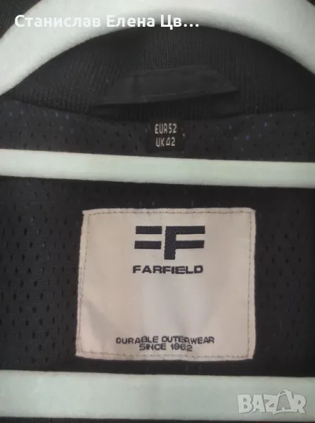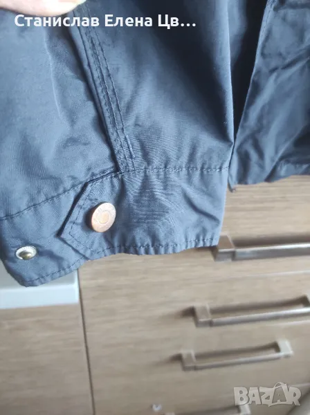 Мъжко пролетно -есенно якенце, без забележки, отвътре е с мрежеста подплата, стяга се в кръста с вътрешни ластици, джобчета външни долни и горни. Якенцето е с цип и тик так копчета, тъмносиньо. Размер по етикет 52, на фирмата Farfield.