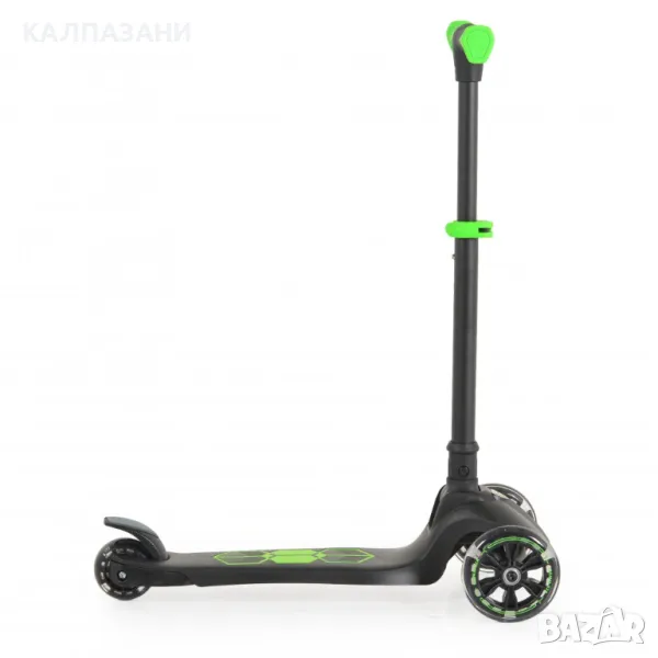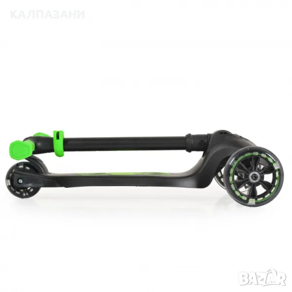 Детска сгъваема тротинетка произведена от алуминий + найлон + PP; Кормилната тръба е алуминиева с регулируема височина 52-72 см. Предни колела: PU 120*24MM с LED; Задно колело: PU 80*40MM с LED; TPE ръкохватки; Гравитационна система за кормилно управление със задна спирачка; Максимално тегло на натоварване: 50 кг