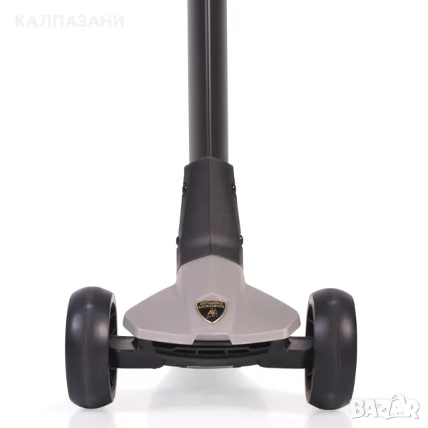 Сгъваема детска тротинетка сертифицирана с лиценз от Lamborghini; Материал: Алуминиум и РР(Полипропилен); Ръкохватки: ТРЕ 12см;Осмоъгълна форма; Тръба на кормилото: Алумиева в триъгълна форма с регулиране на височината от 70 до 82см; Сгъване със завъртане на кормилото; Алуминиева скоба за стягане и алуминиеви лога; Колела светещи PU: 120*40мм предни; 80*40мм задно; Лагери: Carbon ABEC-7; Основа за стъпване: размер 120*335мм с гумирано покритие; За деца на възраст 3+; максимална товароносимост 50кг;
