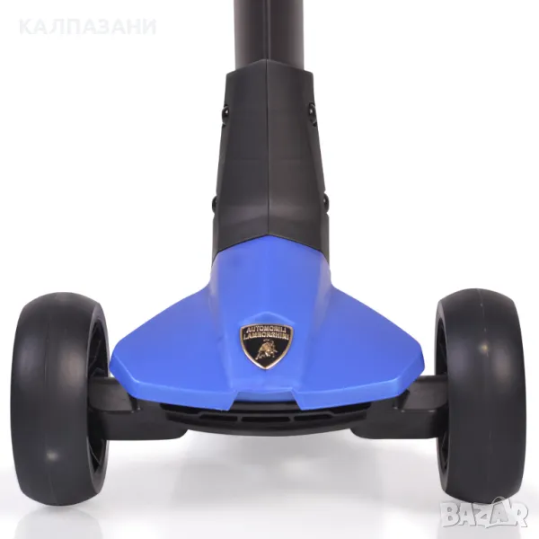 Сгъваема детска тротинетка сертифицирана с лиценз от Lamborghini; Материал: Алуминиум и РР(Полипропилен); Ръкохватки: ТРЕ 12см;Осмоъгълна форма; Тръба на кормилото: Алумиева в триъгълна форма с регулиране на височината от 70 до 82см; Сгъване със завъртане на кормилото; Алуминиева скоба за стягане и алуминиеви лога; Колела светещи PU: 120*40мм предни; 80*40мм задно; Лагери: Carbon ABEC-7; Основа за стъпване: размер 120*335мм с гумирано покритие; За деца на възраст 3+; максимална товароносимост 50кг;
