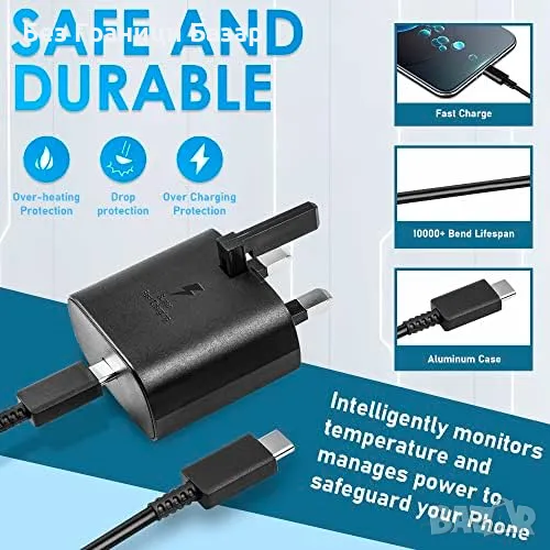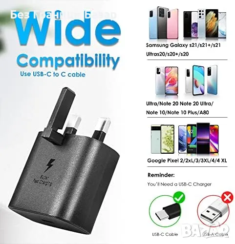 Ново 25W Бързо Зареждане USB-C Кабел и Адаптер за Samsung Galaxy