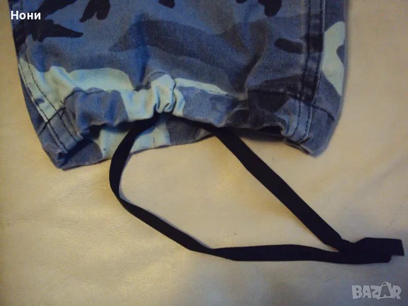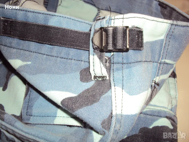 Камуфлажен панталон произведен в САЩ. С талия с регулируеми ключалки. Номера съм го снимала. Мисля, че отговаря на 3 ХЛ. Размери: Дължина на панталона 102 см .Талия в разтегнато положение 96 см., но има регулируеми ключалки и се свива. Обличан до пъти. Отдолу има вързанки на крачола, с който се свиват!