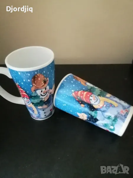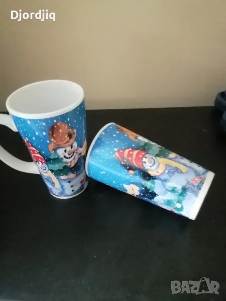 Две чаени чаши с коледни мотиви. Високи 15 см. Нови, не ползвани.