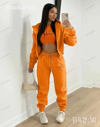 Дамски моден есенно-зимен комплект от три части, 10цвята