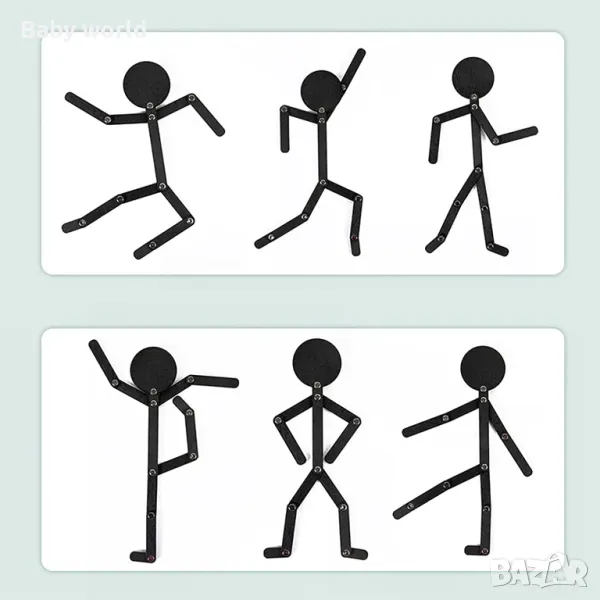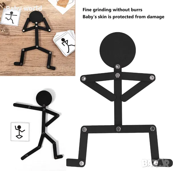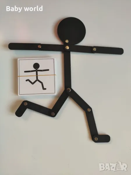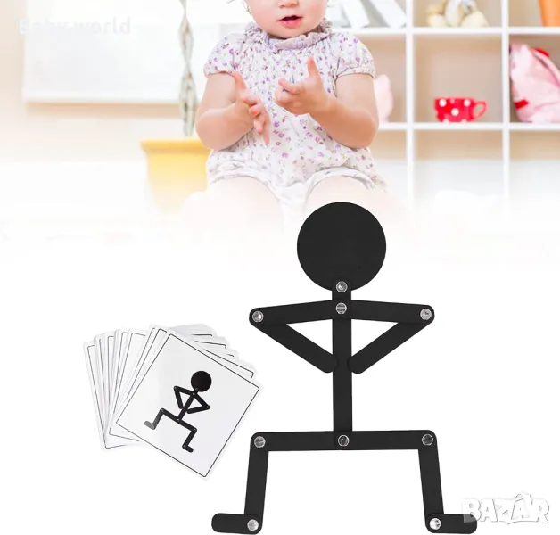 Упражнява координацията и наблюдателността, чрез движение на малките ръчички, за да променят действието на човечето.