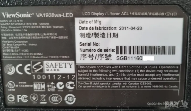 LED монитор Viewsonic VA1938, 18.5 инча → Обява 47639649