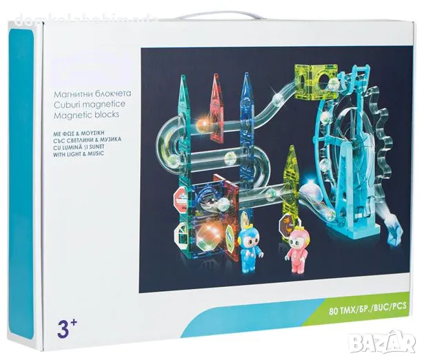Магнитен конструктор, писта за топчета, Осветление, 80 части