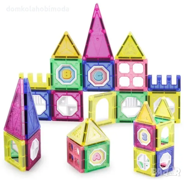 Магнитни цветни фигурки в различни форми за безброй конструкции и уникален дизайн. Пакетът съдържа 34 фигурки за композиции.