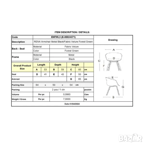 Размери на опаковката: 64x50x54cm (2бр/ctn)