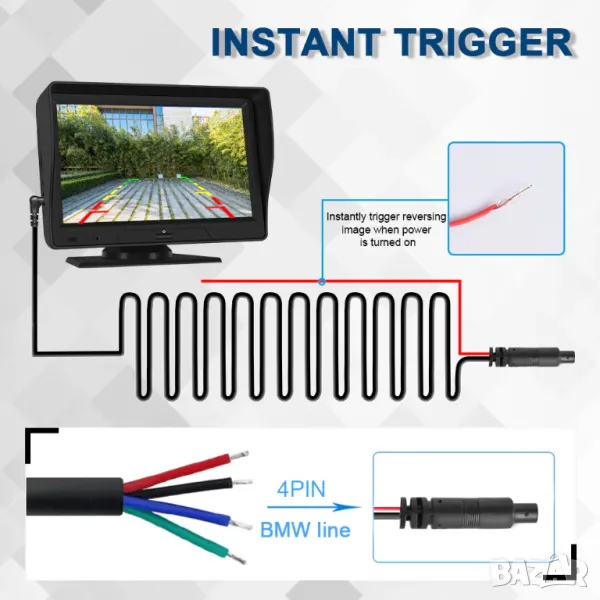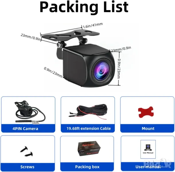 Камера за видеорегистратор, DVR, BMW, 4 PIN, мултимедия, кола, автомобил, камера, кабел 15M, 4 пин