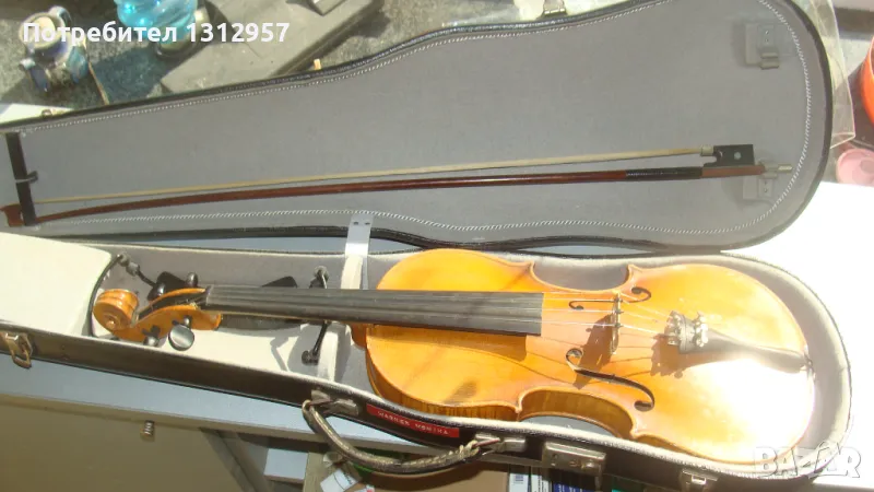 Стара немска цигулка -марка Йохан БартШвейцер копи-фецит атФормаан хиерцеум-Амати ,Постин-1813 тов е изписано вътре под ефовете без спукано със малки следи от работа комплект с лъка до дръжката има маркировка- със кутия ,подбрадник и др. дребни,аксесоари ,готова веднага за свирене