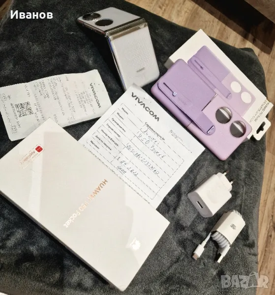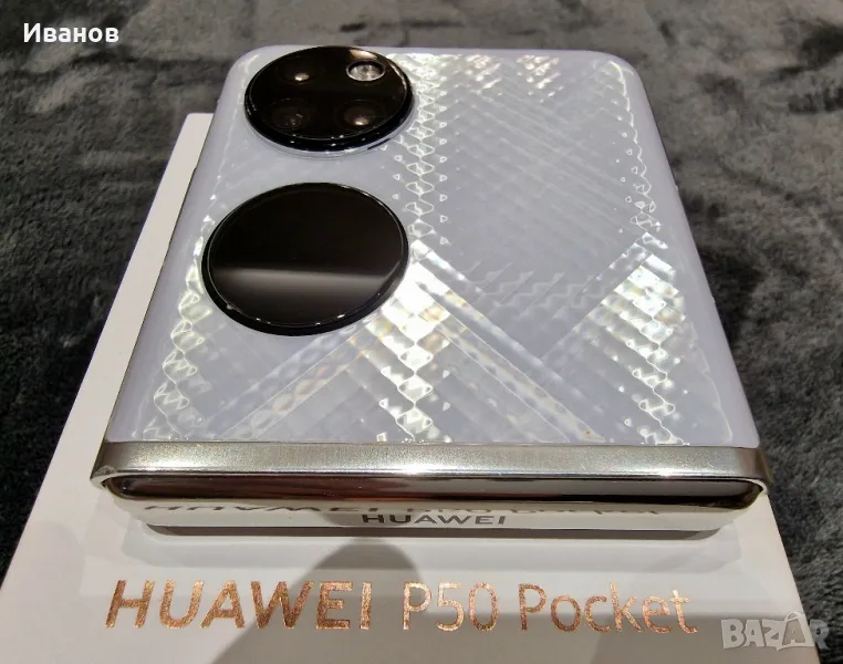 Продавам Huawei (P50 Pocket)Има козметичен дефект по дисплея, който не му пречи на безпроблемната работа.Купуван е от Виваком през Септември 2022, ползван е около година, в края на която се появи този фабричен дефект, и от тогава прилежно прибран в кутията си, просто си стои.Пазен, винаги употребяван с фабричния прозрачно-сребрист кейс, както и с оригиналният, луксозен TPU (термопластипен полиуретан), чиято цена беше 100 лв.Допълнително съм сложил керамични протектори както на модулът с камерите, така и на външния дисплей.Телефончето е много хубаво и работи перфектно.. Може да си се ползва и така, защото телефона си работи. Но може и да му се смени дисплея, което би излязло около 500 лева.Батерия - 4000 милиамперчасаВътрешна памет - 256 GBRAM - 8 GBОстаналите параметри ги има и могат да бъдат проверени в интернет, за който му трябва.Качил съм достатъчно снимки, на една които - и касовия бон за закупуване. Въпреки това, ако е необходимо, мога да пратя допълнително снимки.Това е всичко, което се сещам да ви кажа за телефона. Ако имате допълнителни въпроси, не се колебайте да ми се обадите.Предпочитам обаждане, защото не винаги проверявам за съобщения тук.