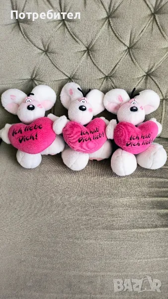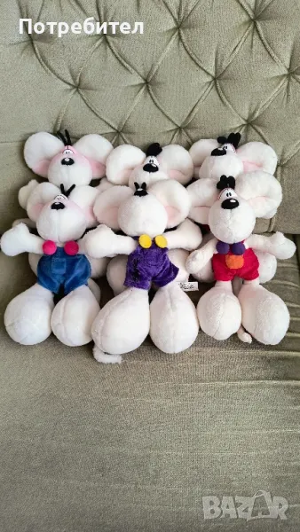 Маркови немски плюшени мишлета Diddl, ученици, момченца, със сърца, (средното е продадено) фокусник, Батман, високи по 25см. цена 8 евро за брой. Diddlina - балерина висока 30 см.цена 13 евро. Голям сив Diddl висок 70 см., цена 26 евро Диск с песни на Diddl, цена 10 евро Много запазени, като нови. При покупка на две мишлета или мишле и диска получавате подарък ключодържател, подобен на тези от последната снимка или мечето. Изпращам с преглед преди плащане и избор на куриер.