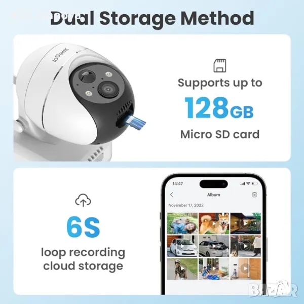 PIR откриване на движение и предупреждения в реално време - Адаптирайте оптимизирани AI алгоритми, т.е. безжичните външни камери за сигурност на eGeek значително подобряват разпознаването като при хора, за да намалят фалшивите аларми, а откриването на хора може да се превключва. Можете дори да персонализирате плана за аларма, интервала на аларма и нивото на чувствителност между 1-10. Вграденият фотодиод поддържа незабавни предупредителни известия (за 0,2 s-2 s), можете да изтегляте и споделяте събития с други по всяко време.