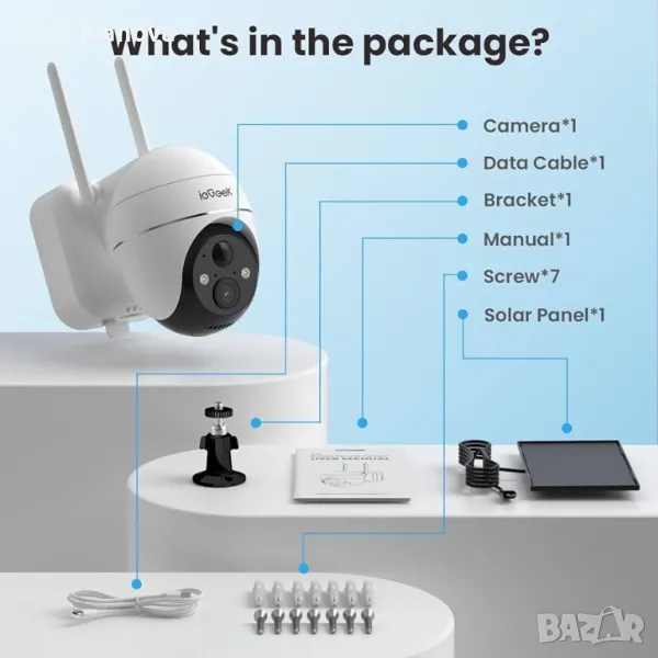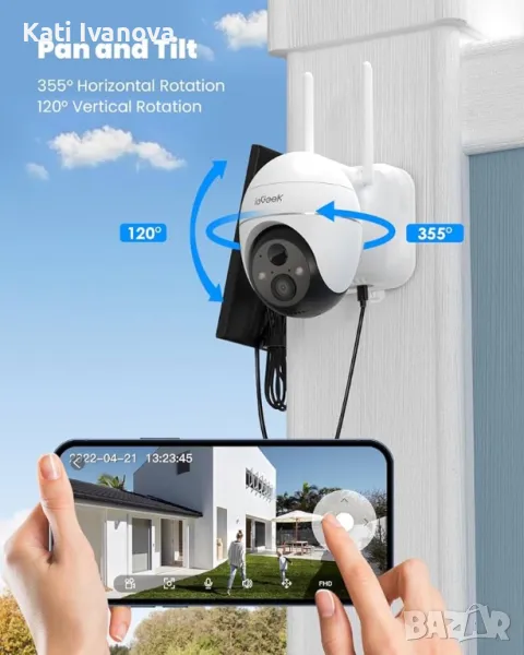 ieGeek ZS-GX1S външна соларна камера, 2K безжична WiFi 360°PTZ камера, захранвана с батерия
