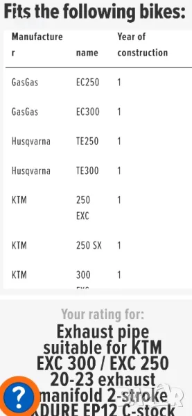 ktm exc tpi 300 250 husqvarna gasgas Ауспух гайда → Обява 47643481