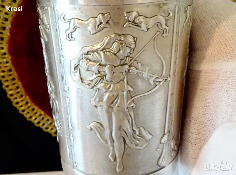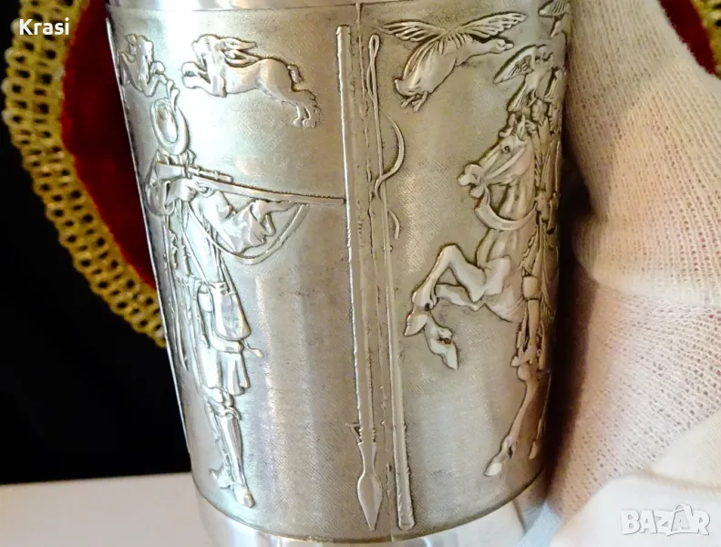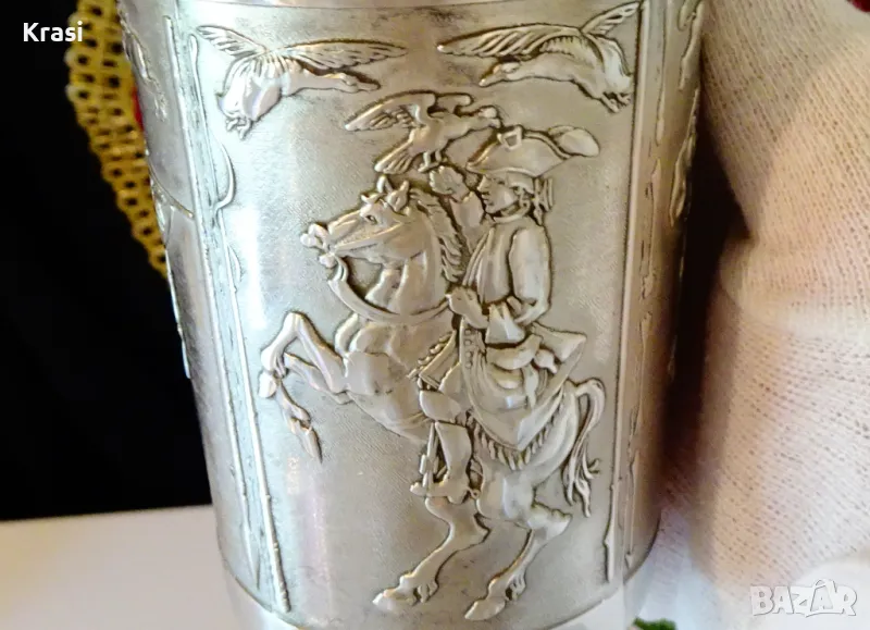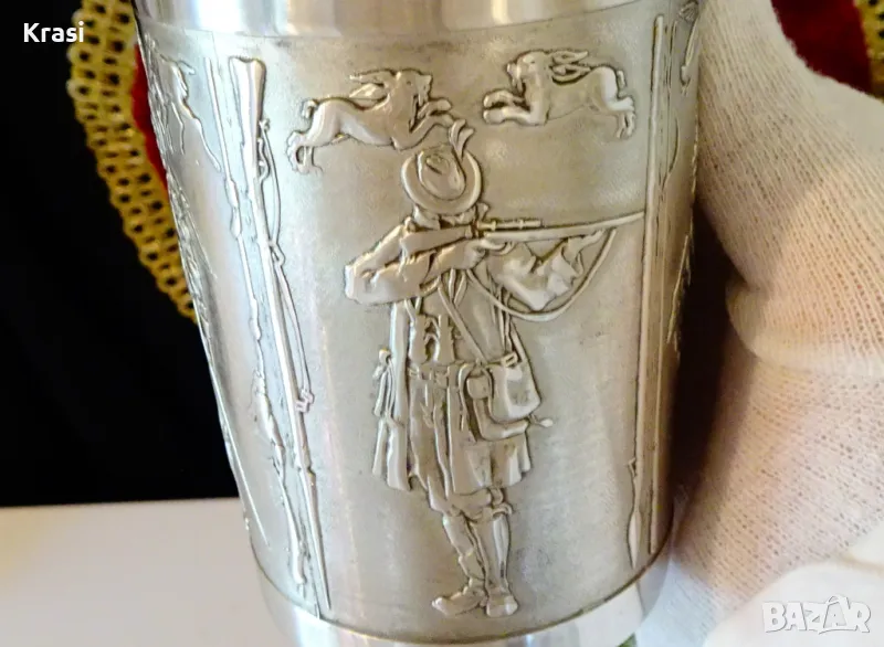 Чаша,халба от калай с уникални ловни картини. → Обява 47644328