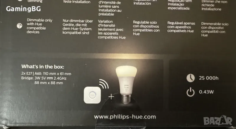 PHILIPS Hue Starter Kit E27, 2 лампи 1100lm + Hue Bridge v2 120,00 лв.