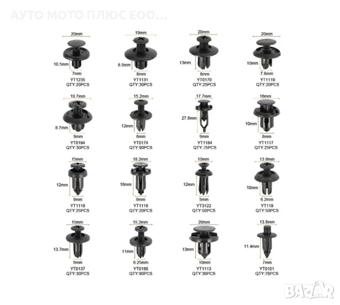 Комплект от 625 бр. универсални щипки за кола.