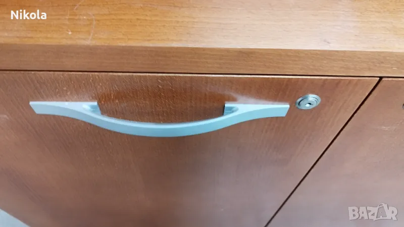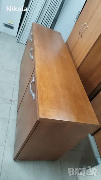 Продавам шкаф с естествен форнир може да се използва за шкафче за обувки или дрехи, зависи на кой за какво му е нужно - може да се използва и като офис шкаф. Шкафа е използван и е в добро състояние метални дръжки и панти, добре работещи, цвета е кафеникав , плота е с дебелина 3см. Шкафа е с три врати с ключалки който работят, има и рафтове, размери ширина 160см, височина 76см и дълбочина 45см.