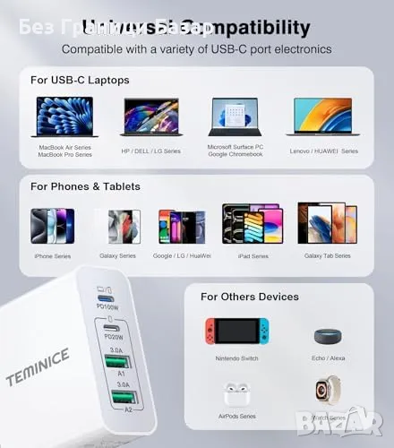 Ново 140W USB C Зарядно 4 Порта, Бързо Зареждане за MacBook и iPhone