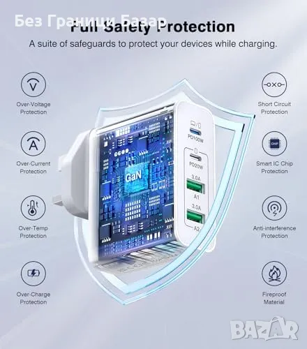 4-в-1 USB C зарядно с 2 USB-C и 2 USB-A порта