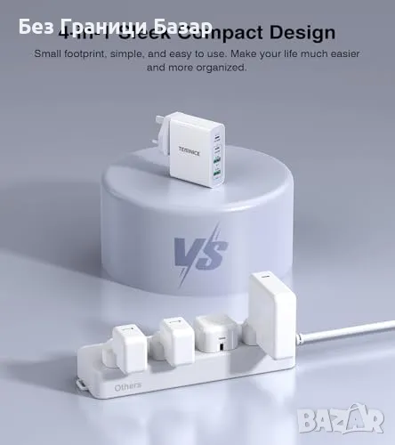 Зарежда до 4 устройства едновременно – лаптопи, смартфони, таблети, смарт часовници и други