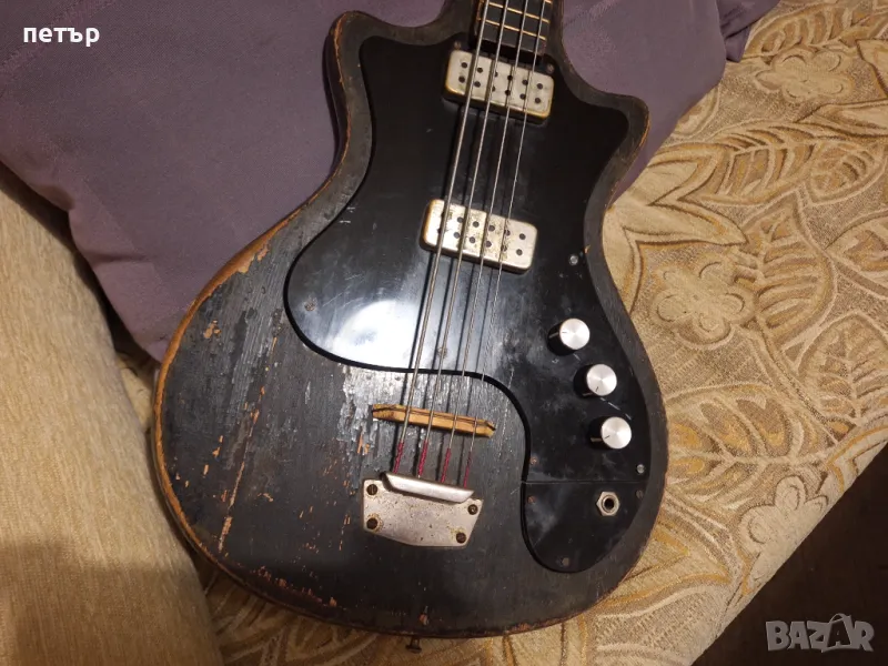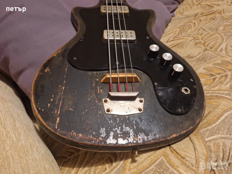 Китарата е в лошо състояние. Иска реставрация.Грифа е прав и здраво тяло.Работеща електроника.Рядък модел за колекция. Лично предаване.