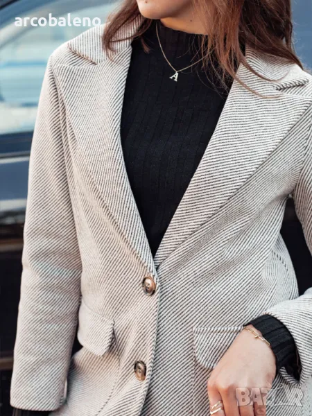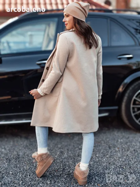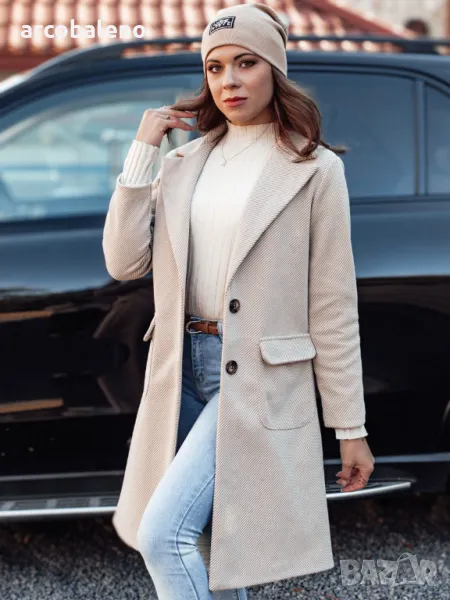 Елегантно палто със семпла, класическа кройка, което се съчетава перфектно с различни стилове. Висококачествената материя осигурява комфорт при носене, а стилните детайли придават елегантност. Перфектни за по-студените дни, както всеки ден, така и за специални поводи. Функционалните джобове и вталената кройка го правят универсален избор за всяка модна дама. Вписва се перфектно в съвременните тенденции