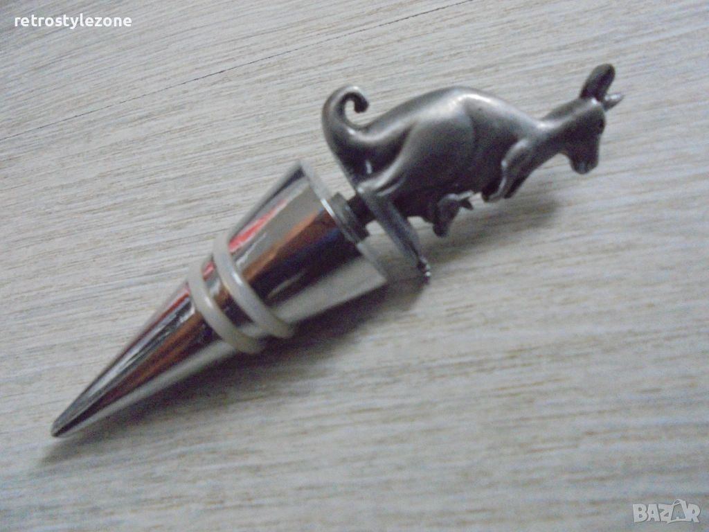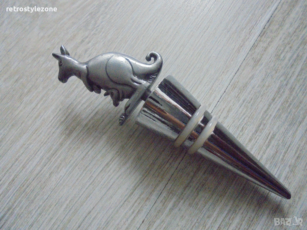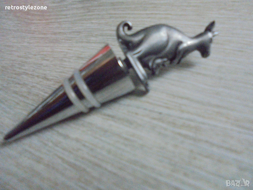 Декоративна метална тапа / запушалка за бутилка с атрактивна фигура кенгуро. Подходяща за винени бутилки, подарък или колекционерска декорация.