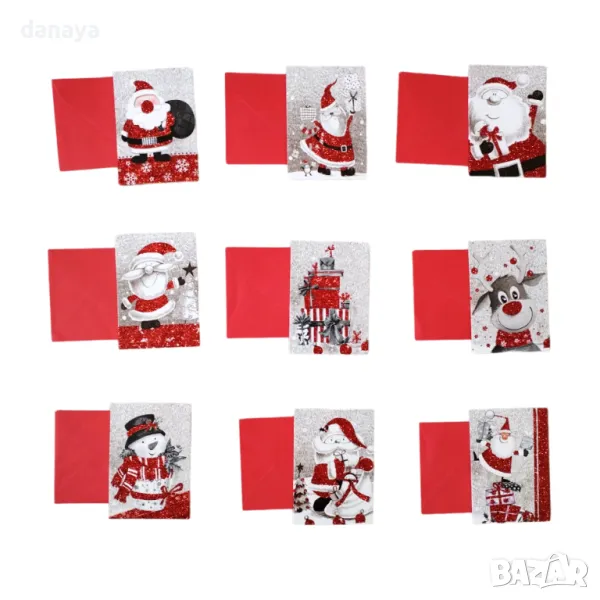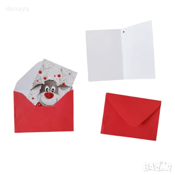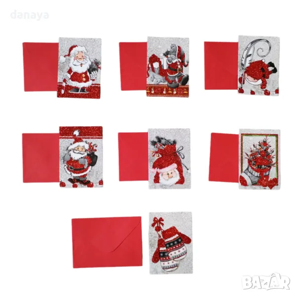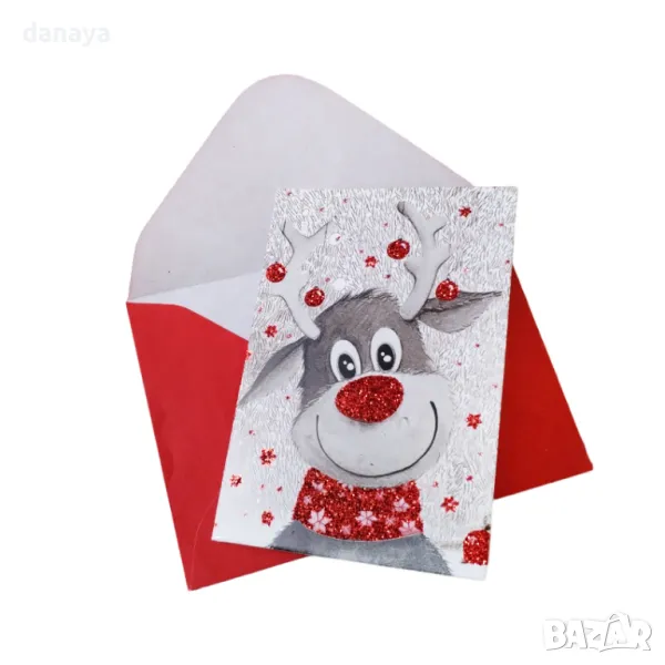 Малка коледна картичка, която би била чудесно допълнение към коледният подарък за любим човек. Картичките се предлагат в различни коледни картинки, допълнително декорирани с брокатени частици. Всяка картичка идва с червен плик, в който да я подариш.