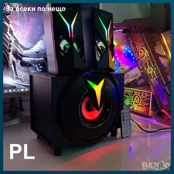 Тонколони Kisonli TM-1000U, Bluetooth, USB, AUX, SD, FM, 8W+2x4W, Черен