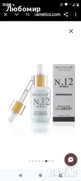 Съюзник за вашата красота.SKIN DROP n.12 (Масло от чаено дърво) е антибактериално етерично масло със силно дермопочистващо действие, намаляващо броя на лезиите от акне. Противодейства на акне пъпки и малки несъвършенства.Препоръчваме да използвате директно върху пустулата.Mookajé SKIN DROP са решения за красота, способни да се адаптират към нуждите на кожата. Специфичните състояния на кожата и специфичните нужди трябва да се третират с целеви съставки. За индивидуална профилактика, грижа и поддържащо лечение за кожата, за всеки тип кожа и възраст. Комбинация от научни иновации и традиция, активни съставки и висококачествени сертифицирани съставки.
